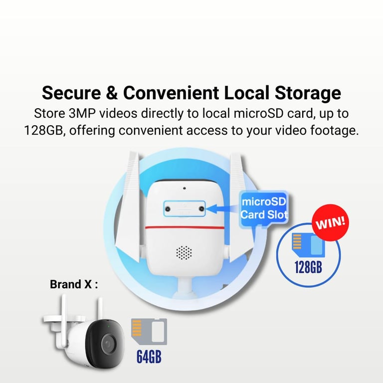 Safe Storage: Locally stores up to 128 GB 3MP video on a microSD card, offering convenient access to your video footage.