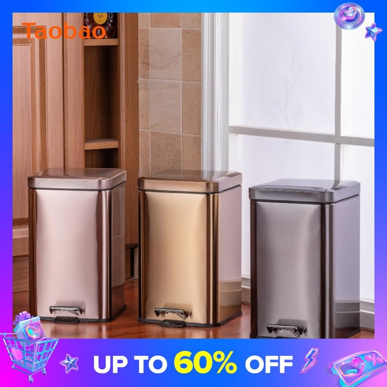 Stainless Steel Trash Can Step-on Kitchen Bathroom Creative Fashion Home Living Room Toilet Bedroom Square Step-on