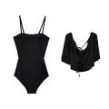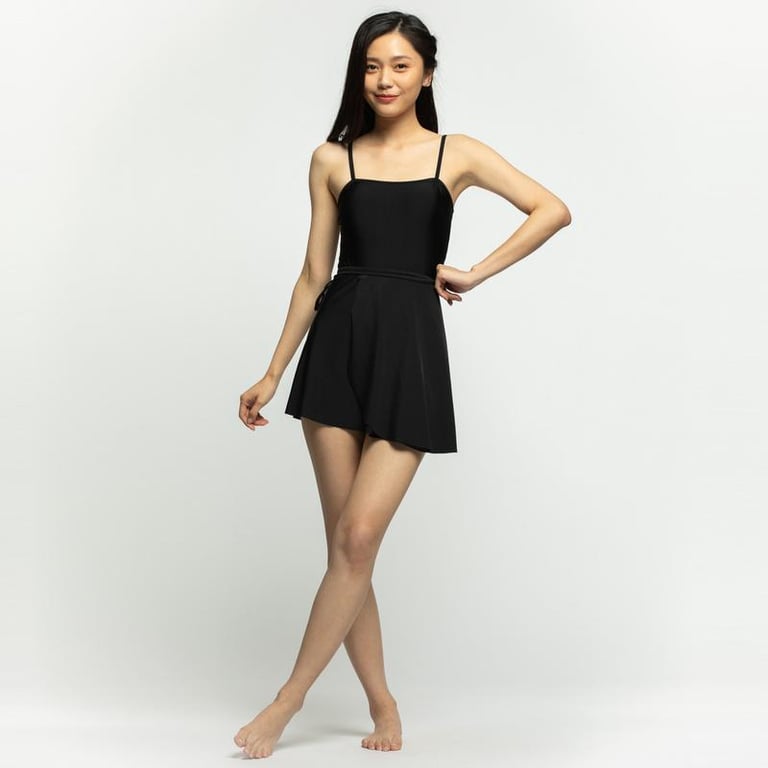 If you're looking for something a little more covered up, this swim dress set is a great option. It offers 2-way styling from sea to lunch with a cute removable skirt design to cover belly.
