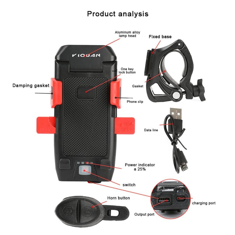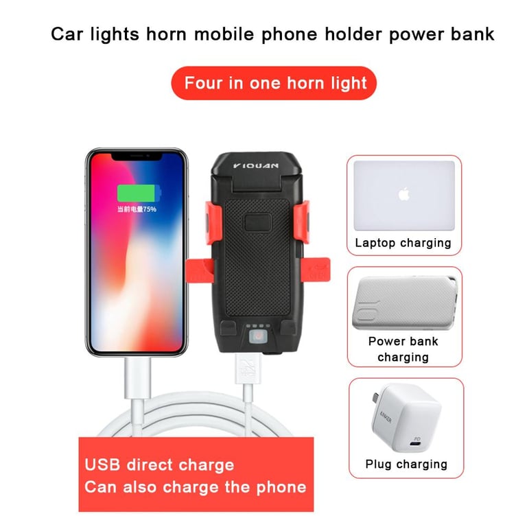 \n6. Multiple functions: multi-function 4 in 1, bicycle lights, horns, brackets, a mobile power source with multiple functions, simple operation, convenient to carry, and is a safety guarantee for your travel.