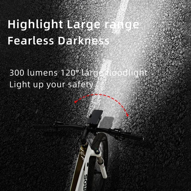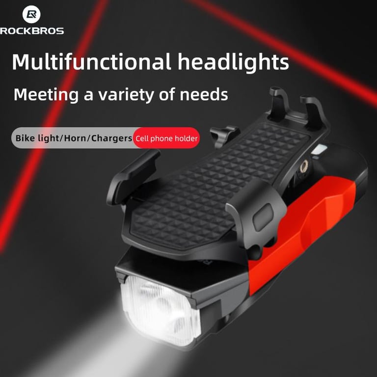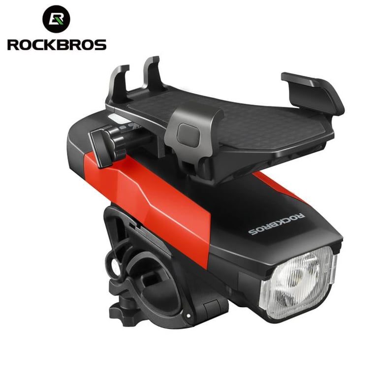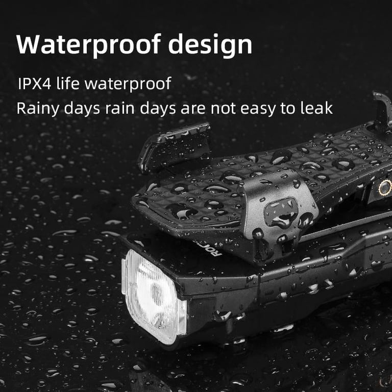 - Product Details:Brand:ROCKBROSMaterial:High Strength ABS PlasticBrightness: 300 LumensBattery:2400 mAhWaterproof Level: IPX4Mode: Three Modes(high light-low light-flash)