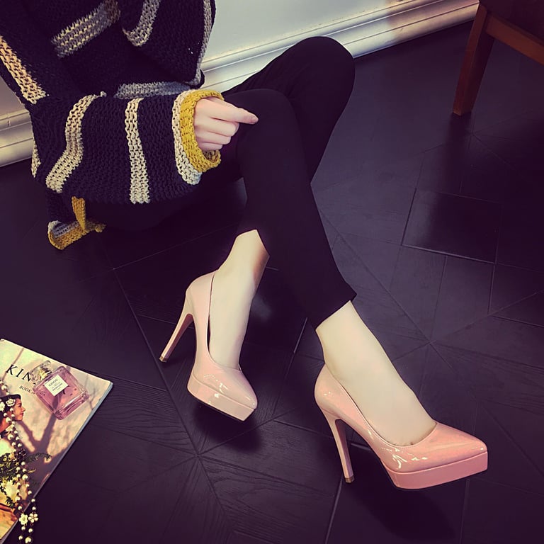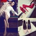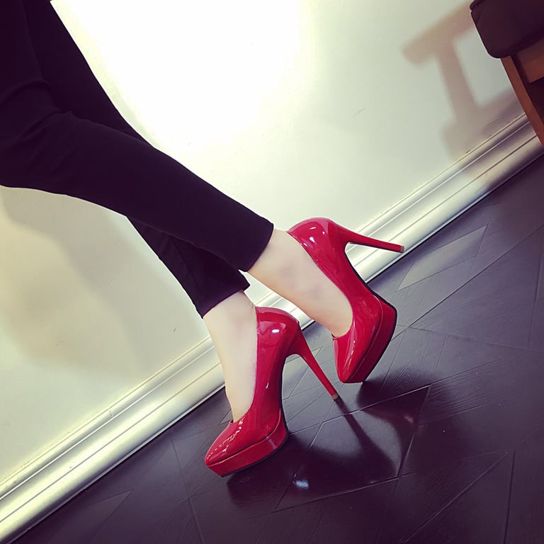 Sexy Pointed-Toe Super High Heel Stiletto Waterproof Platform Paint nv dan xie Black 12CM Small Size High Heels Red Wedding Shoes