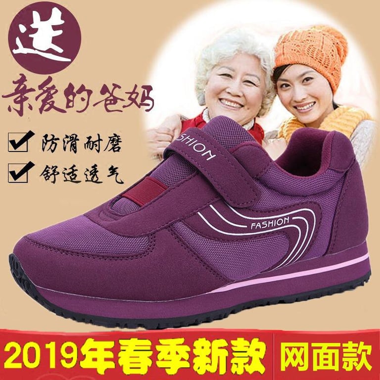 Middle-Aged and Elderly Walking Mesh Surface Shoes Female Non-Slip Soft Elderly Sports Shoes Autumn Mother's Shoes Tourism Running Leisure Shoes