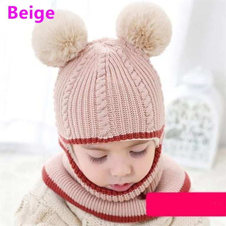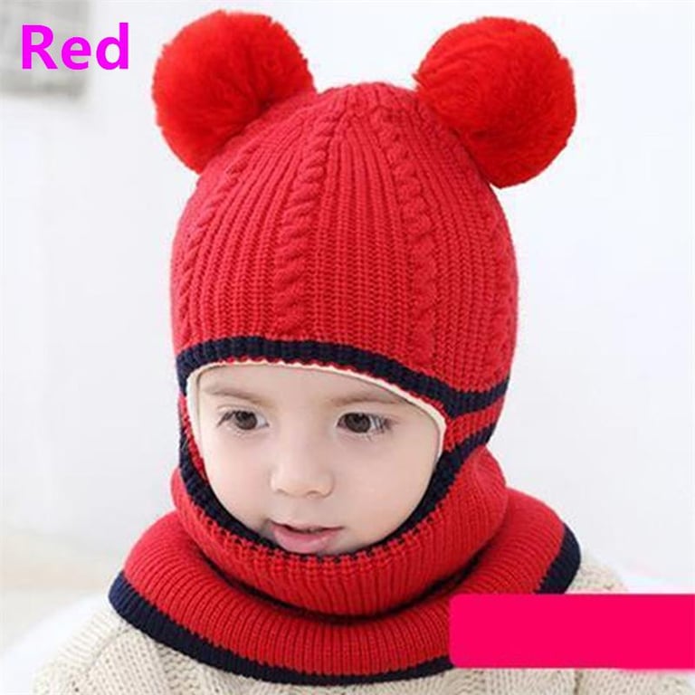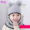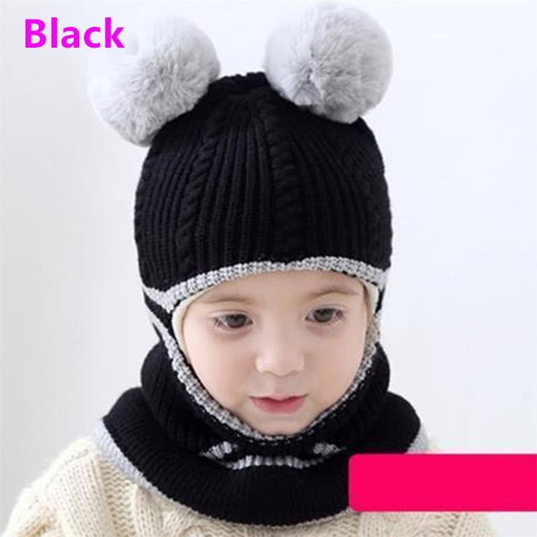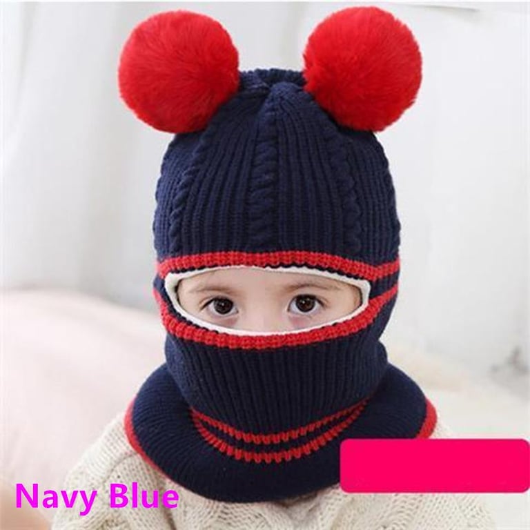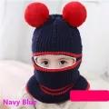 Baby Windproof Cap Winter Warm Cashmere Inside Knitted Caps Neck Warmer Face Mask Full Face Cover Kids Thick Cute Hat