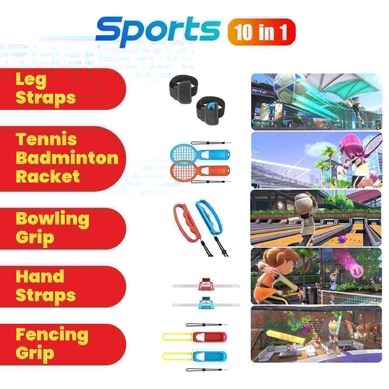 Nintendo Switch Sport Controller Accessories Set 10 in 1 Leg Strap / Hand Strap / Tennis Racket / Bowling Grip / Fencing Stick Motion Gaming Accessories [Singapore Seller]