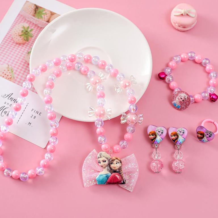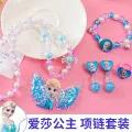 Frozen Elsa Necklace Children's Bracelet Earrings Ring Set Little Princess Girl's Jewelry Gift Jewelry Box