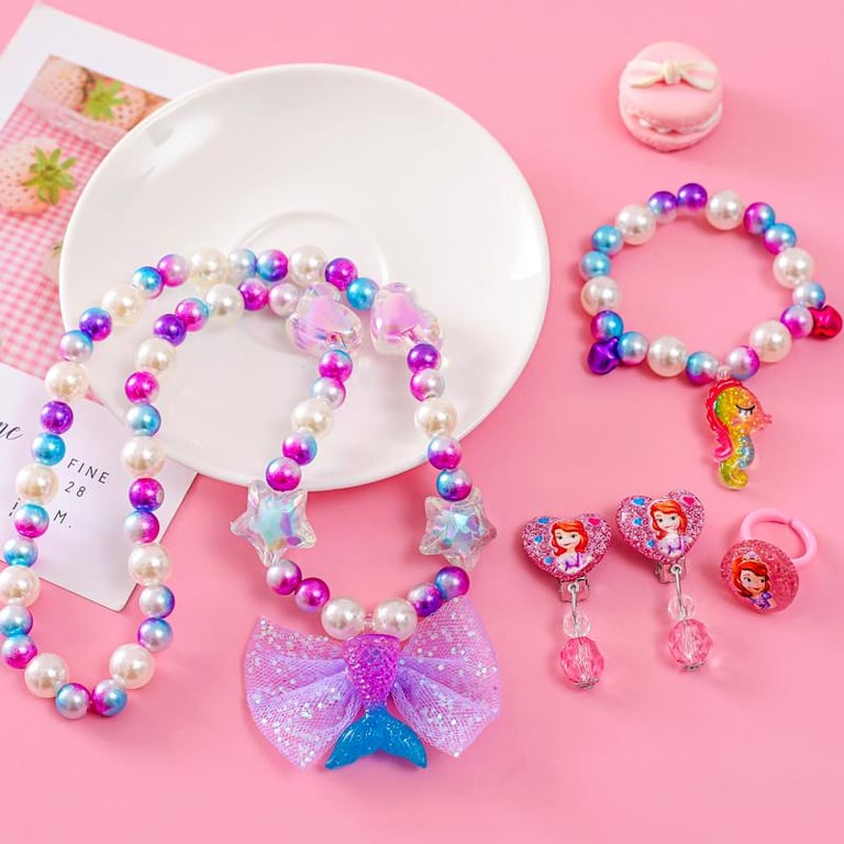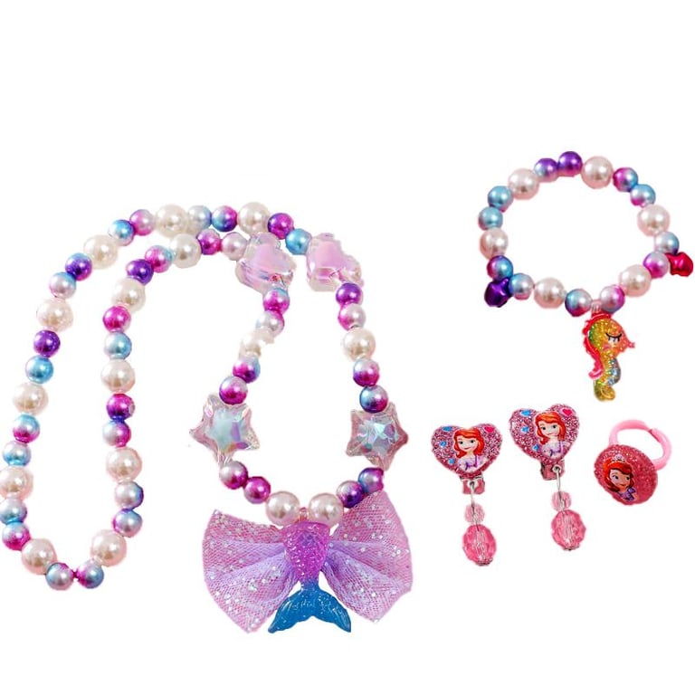 6 Pieces Mermaid Shell Necklace + Bracelet Gift Set Girl Fashion Accessories for Kids