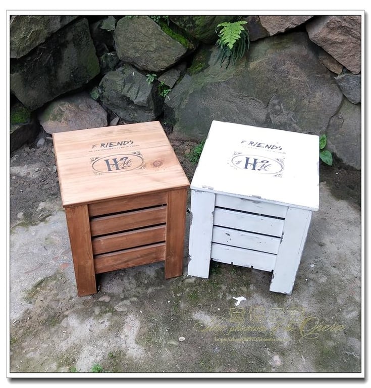 Retro Solid Wood Square Wooden Box Storage Box Hollow out Can Be Used as Stool Open Storable Laundry Basket Tea Table