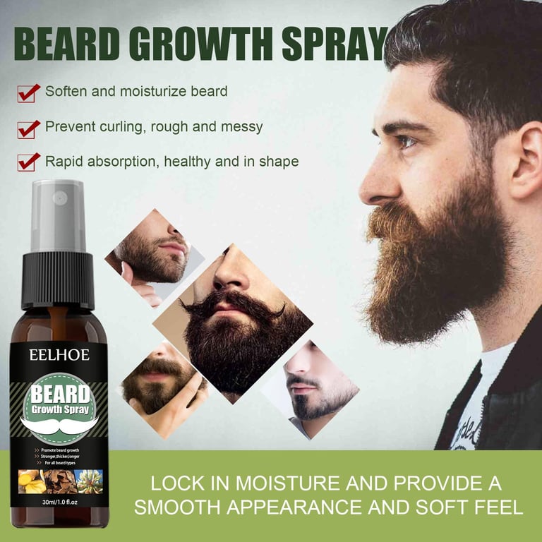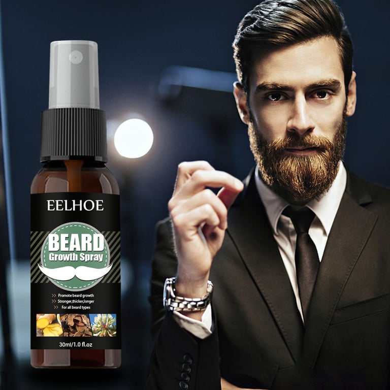 Eelhoe Beard Growth Liquid 100% Organic Beard Oil Natural Accelerate Facial Hair Grow Beard Essential Oil Gentlemen's Beard Grooming Moisturizing Extension Spray(30ml)