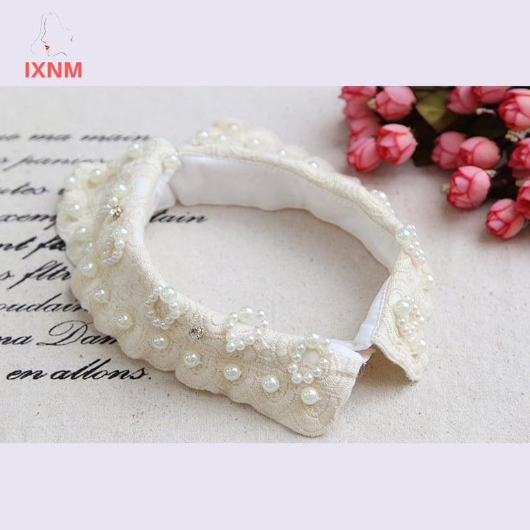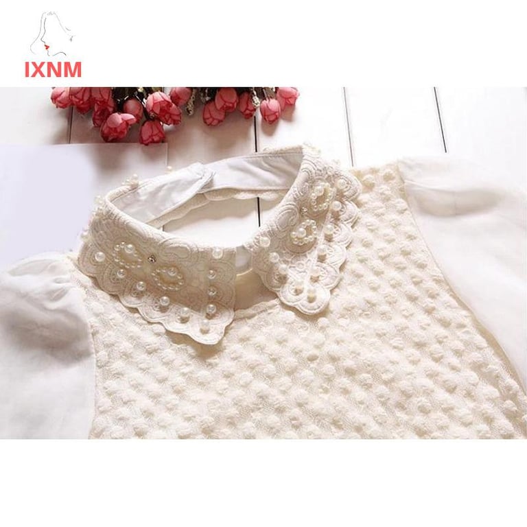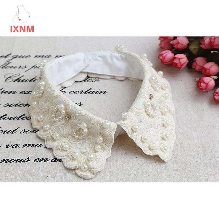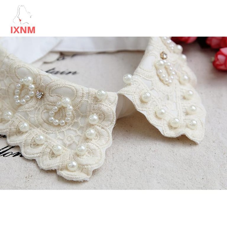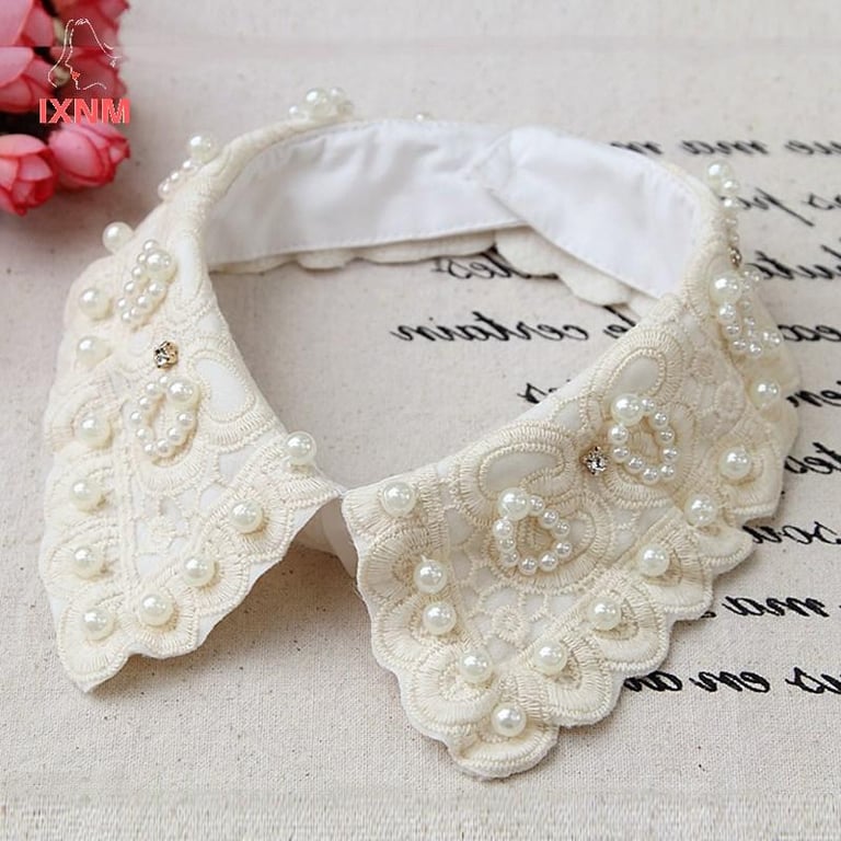 IXNM Women Fake Collar Vintage Lace Faux Pearl Decor Detachable Half Shirts Fake Collar Collar Women Sweater Dress Uniform Accessories Comfortable Elegant Vintage Lace Faux Pearl Decor Detachable -intl