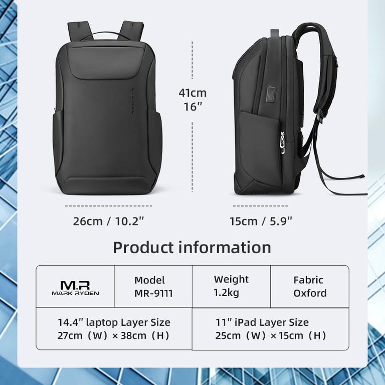 Mark Ryden Business Men Backpacks Laptop Backpacks Travel School Student Bags USB Charging Backpacks MR9111X