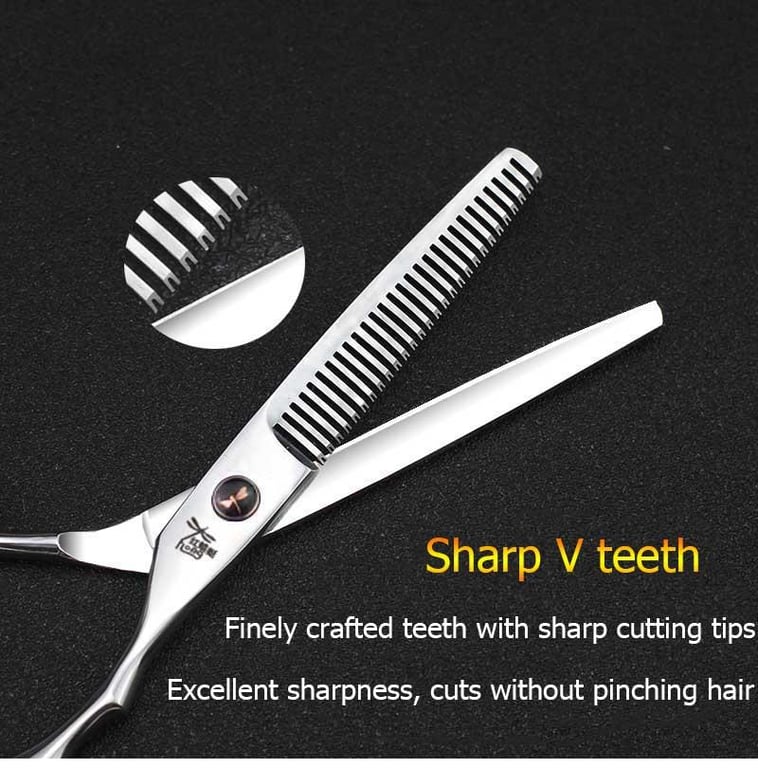 4.100% 440c Japanese stainless steel hairdressing scissors to the sharp edge of high-quality materials, evenly trim the hair without damaging the hair.