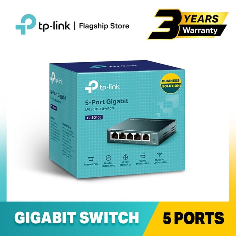 TP-LINK TL-SG105 5 Port Gigabit Network Switch (Plug & Play, Steel Case)