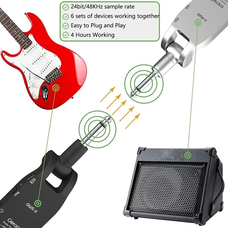 Getaria Upgrade GWS-8 Guitar Wireless transmitter receiver offers a reliable and affordable way to transmit your guitar (or any other electric musical
