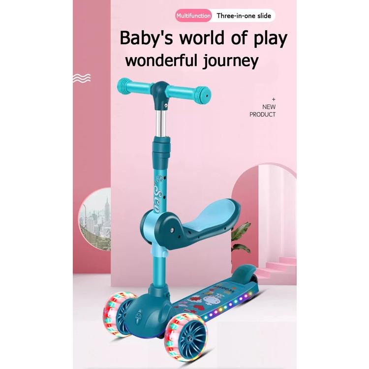 🌟Local Singapore Ready Stock🌟[UPGRADED PACKAGING] Children 3 Wheels Kick Scooter (with Sound and Foldable Seat)