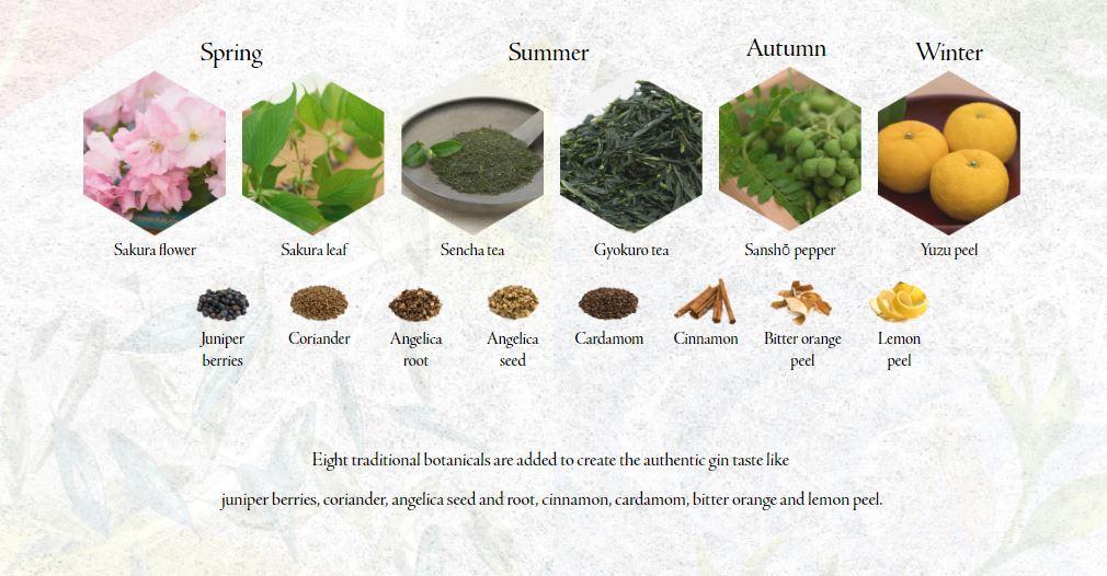 Six Japanese botanicals cultivated over four seasons, the six Japanese botanicals have been carefully selected to create ROKU, Japan's authentic craft gin.