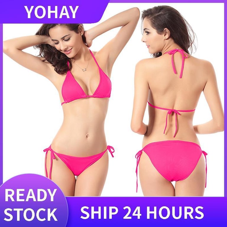 Women Sexy Two Piece Swimsuit Lace Up Solid Color Split Swimwear Bathing Suit