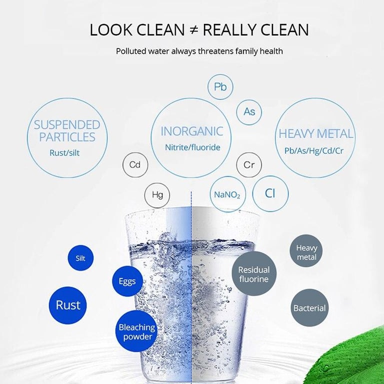 The filter can be triple-filtered, can filter suspended particles in water (sand, rust, etc.), inorganic substances (calcium nitrite, derivatives, chloroform, residual chlorine, etc.) to remove different colors and odors in water;