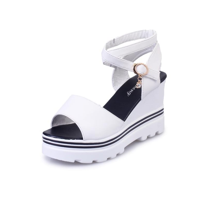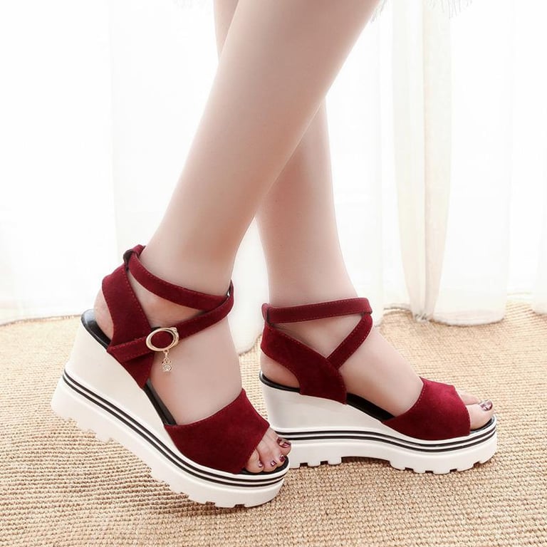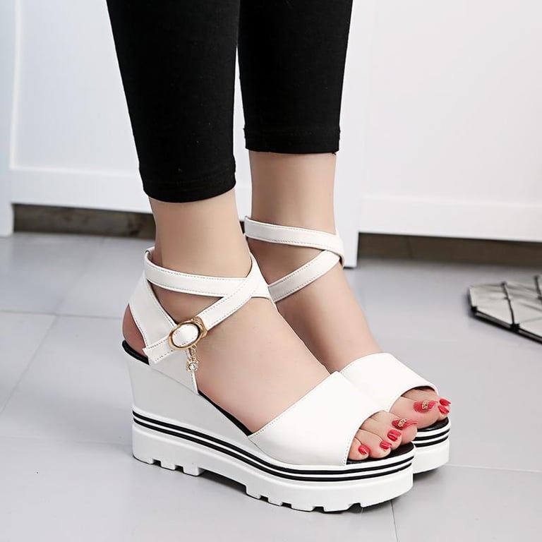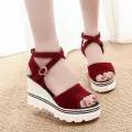 Internet Celebrity Sandals Women's Fairy Style Ins Trendy Height Increasing Super Popular New Tendon Bottom Platform Simple and Stylish Semi-high Heeled Women's Shoes