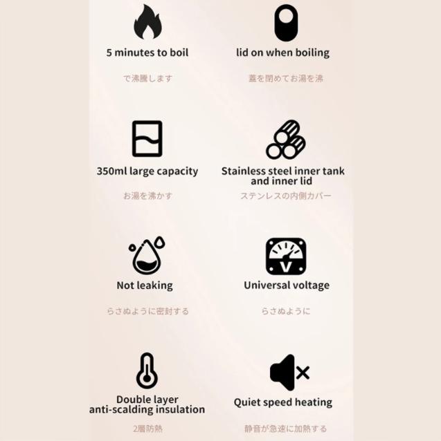Japan Sdrnka Electric Kettle 110-240V Dual Voltage Portable Electric Heating Bottle 350ml Automatic Kettle Stainless Steel Heat Preservation Boiling Water Cup