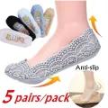 5Pairs Women Cotton Socks Invisible Anti-slip Ankle Lace Socks Girls No Show Socks Non-slip