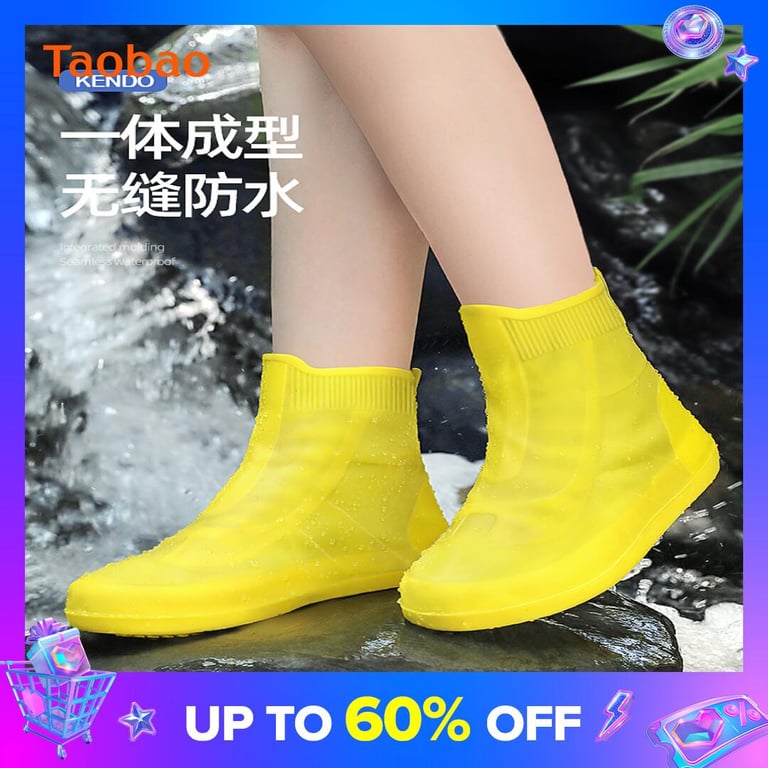 Rain Boots Rain-Proof Waterproof Rain Boots Women's Rubber Shoes Non-Slip Thickened Wear-Resistant Silicone Rain-Proof Children's Rain Shoes Cover Men's Water Shoes