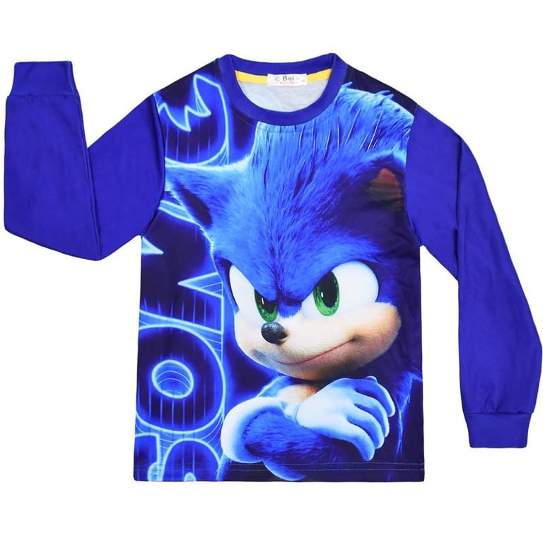 {Sweet Baby} Cartoon Boys Pyjamas Kids Sleepwear Suit Sonic Long Sleeve Tops & Pants Boy Pajamas Set Children Clothing (1 sets) for 4-10 Years