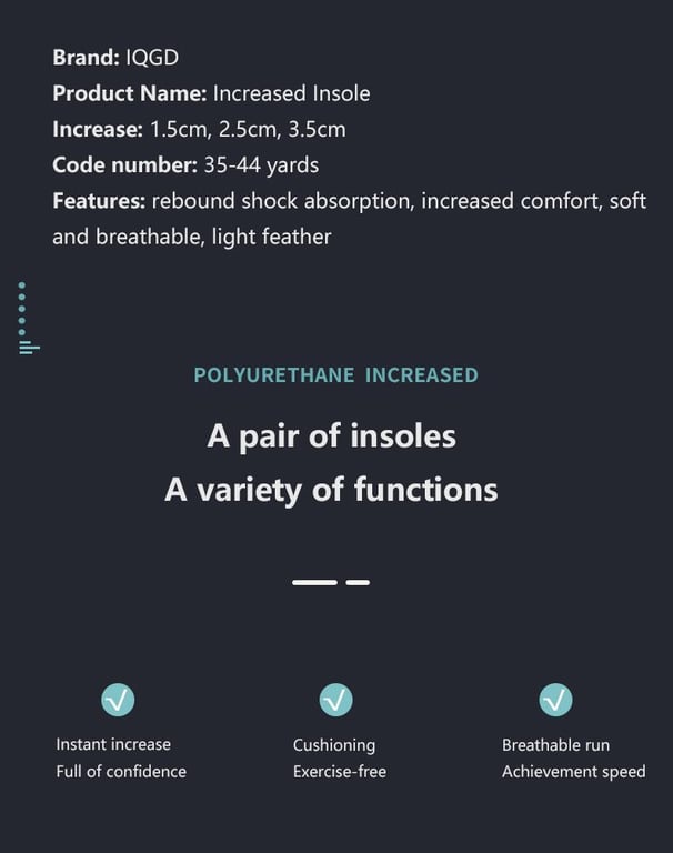 Sports heightening insole, a heightening mat that can be worn for playing and running.