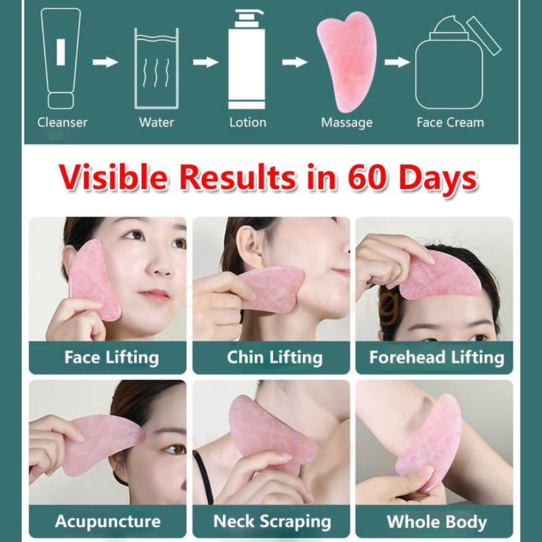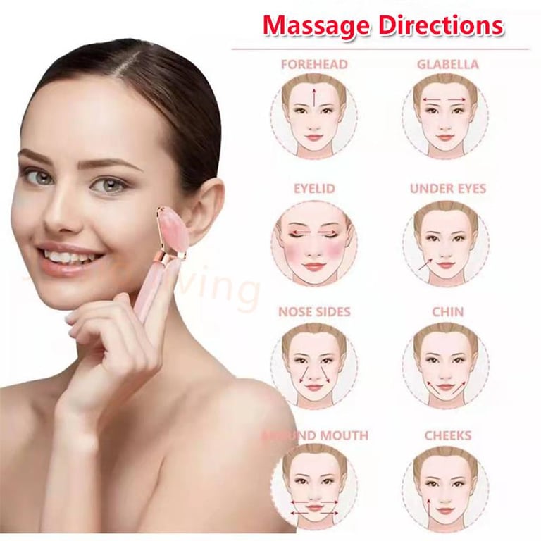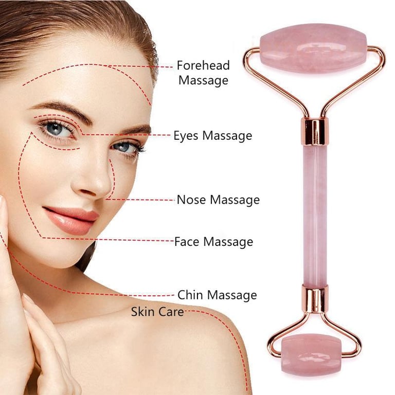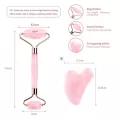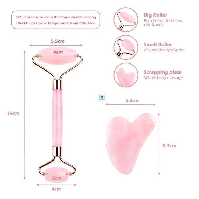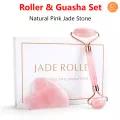💖Christmas Gift💖 Pink Roller Natural Jade GuaSha Set Eyes Face Body Massage Rose Quartz Gua Sha Massager Face Eye Roller Gift Idea Face Roller 刮痧按摩器