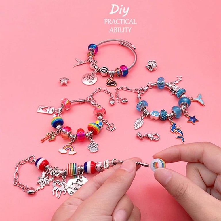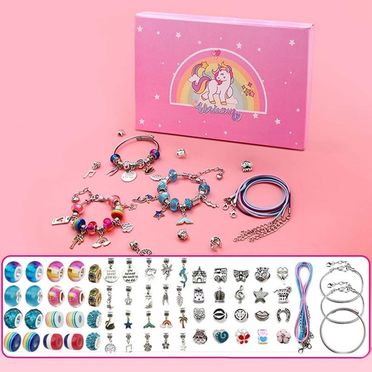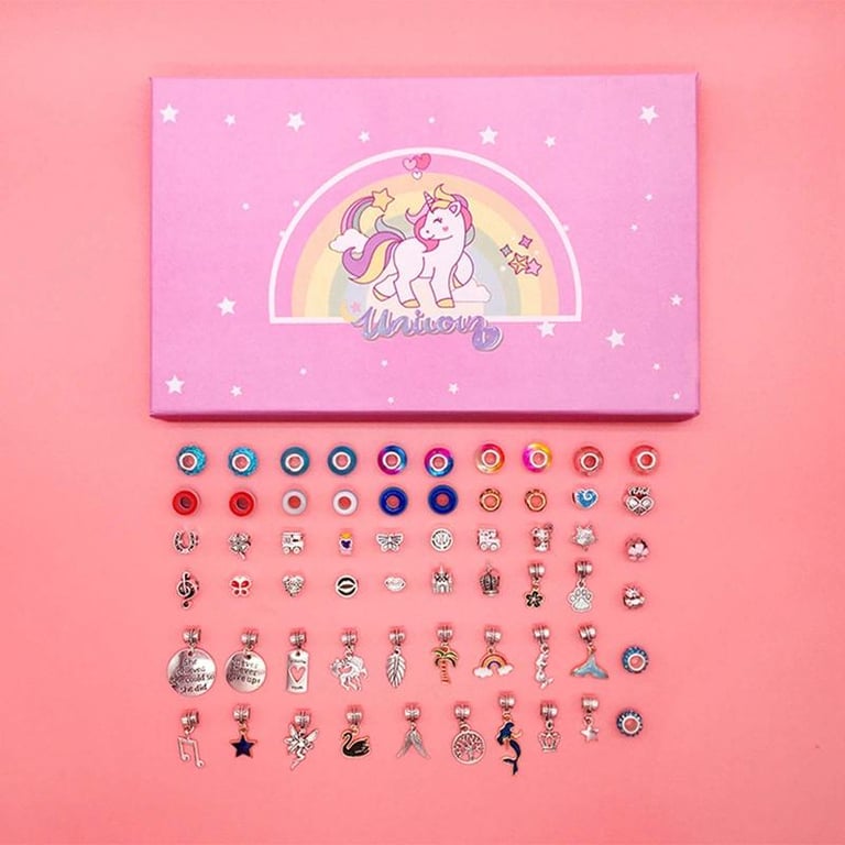 66Pcs Christmas Unicorn Themed DIY Charm Bracelet Making Kit Christmas Holiday Advent Calendar Xmas Surprise Gift For Girls Boys Kids Teens