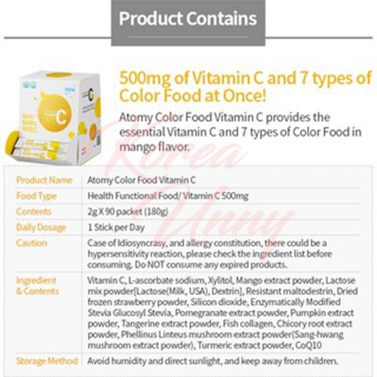 1) 2g X 90Sticks2) Atomy Color Food Vitamin C3) Latest prduct from Atomy4) Vitamin C 500mg / 1stick