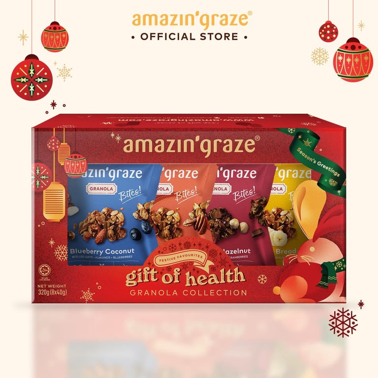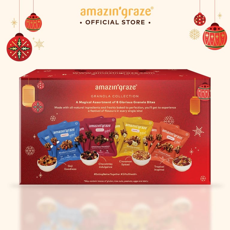Granola Collection A Magical Assortment of 8 Glorious Granola Bites This festive collection is filled with our most delicious granola bites! Made with all-natural ingredients and freshly baked to perfection, you’ll get to experience a festival of flavours in every single bite!