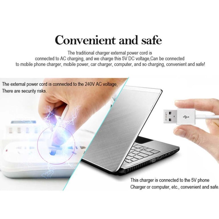 Convenience and easy charge with USB cable, you can charge wherever there is a USB jack, just connect with your desktop, notebook or cellphone adapter.