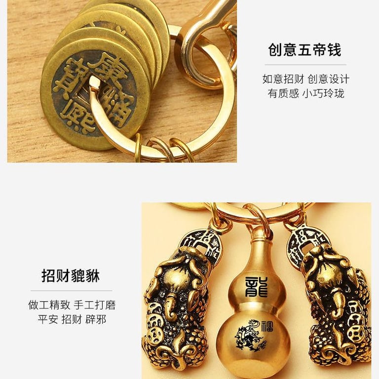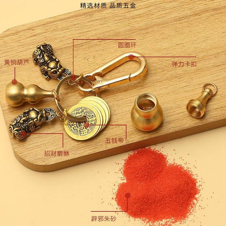 Key Chain Twelve Zodiac Pendant Brass Ruyi Money Drawing Pi Xiu NAFU Qing Dynasty Five Emperors' Coins Gourd Key Chain Pendant