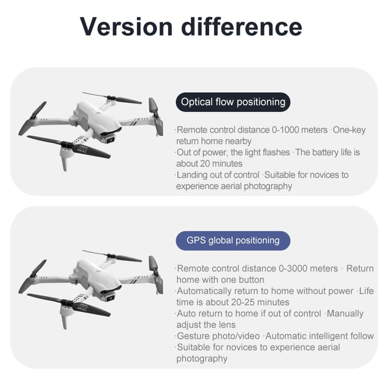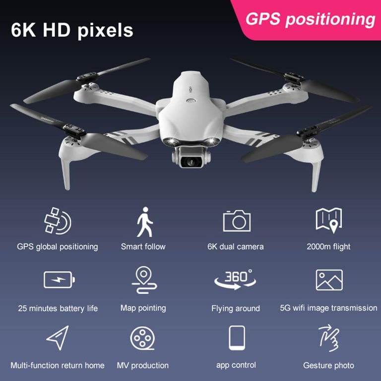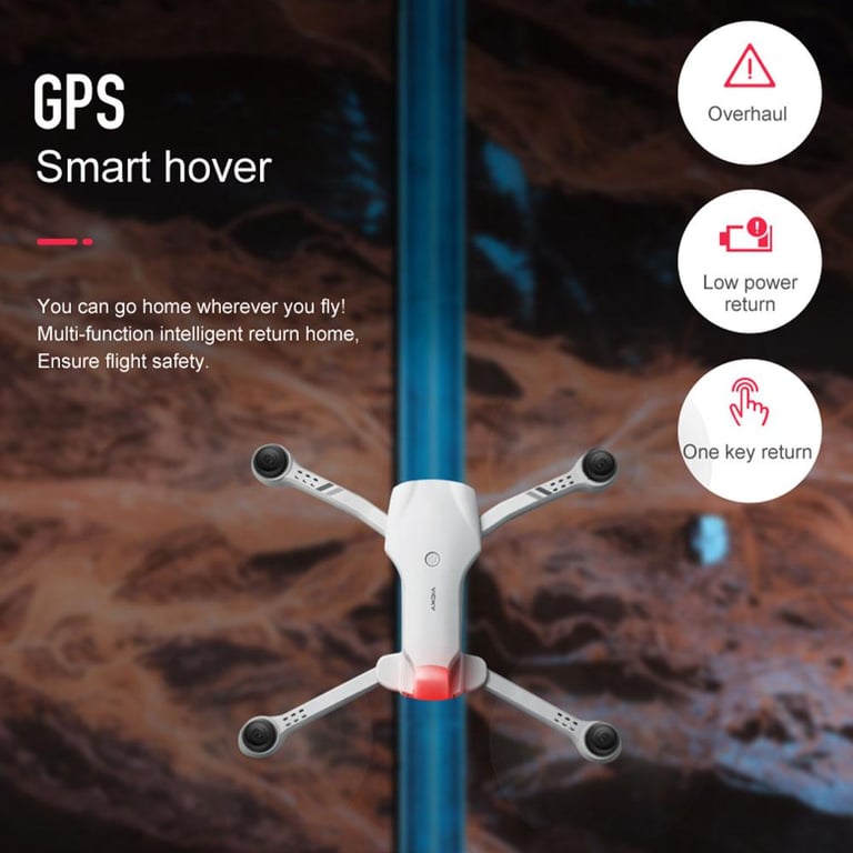 \r\nFunctions: up / down, forward / backward, left / right, lateral flight, level 3 flight speed, LED light, follow me, flight around, waypoint flight, altitude hold mode, headless mode , one-button return, one-button take-off / landing, WiFi FPV, camera / video