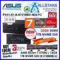 (ALLSTARS : We are Back/ Mini PC Promo) ASUS PN51 Ryzen7 5700U / PN51-S1-B-B7216MD +32GB 3200MHz + 1TB NVME SSD + Unactivated MS Win10 Home (AMD Ryzen 7 5700U / Intel WiFi 6 / BT5.0 / 2.5 LAN / HDMI+DP / USB3.2 Type-C+Type-A / Wired KB+Mse)