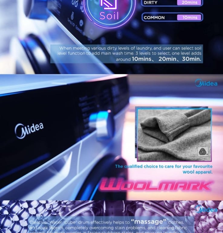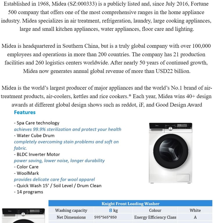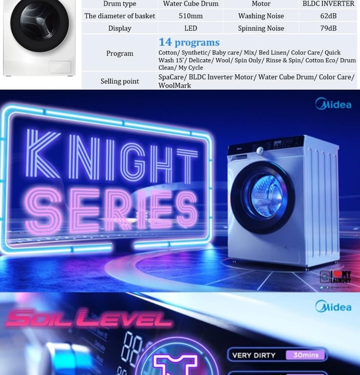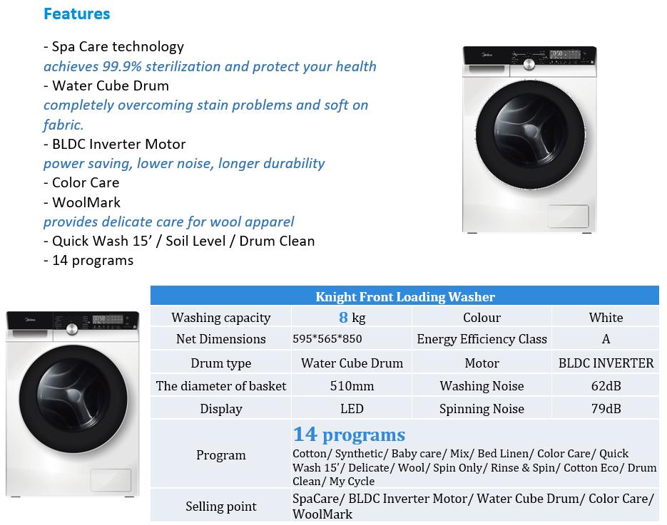 (Bulky) MIDEA MFK868W 8KG KNIGHT FRONT LOAD INVERTER WASHING MACHINE