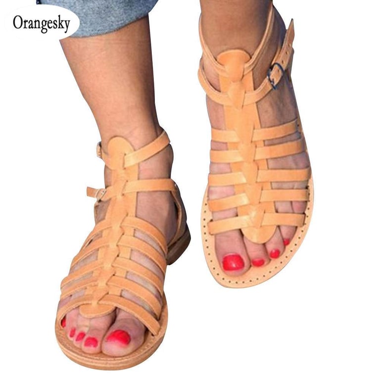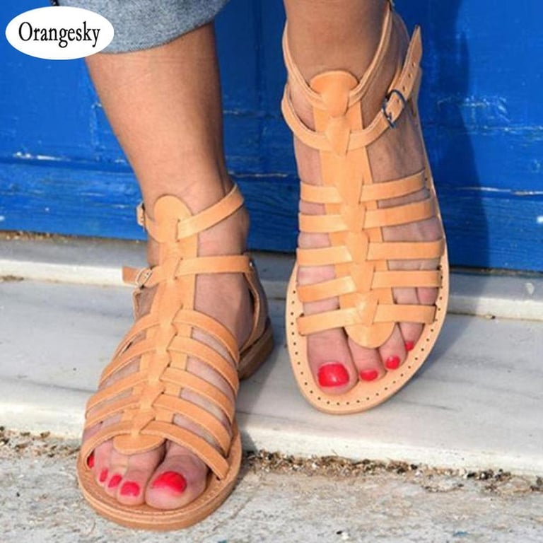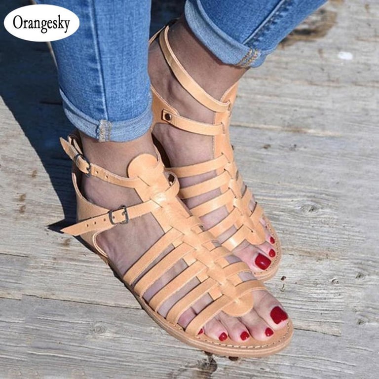Orangesky Ladies Strappy Gladiator Flat Womens Sandals Summer Holiday Beach Shoes Soft and Comfortable