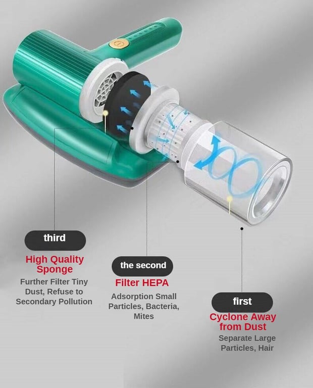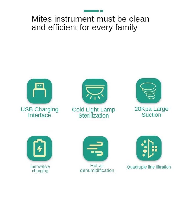 Suitable for vacuuming dust mites, mattresses, sofas, pillows, cushions or bedding.