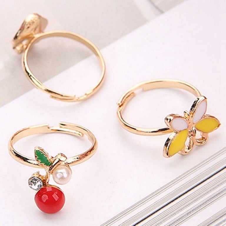 MeiYang 10 Pcs/Set Random Style Cute Cartoon Children Jewelry Kids Resin Alloy Rings Korean Style Girls Children's Day Gift