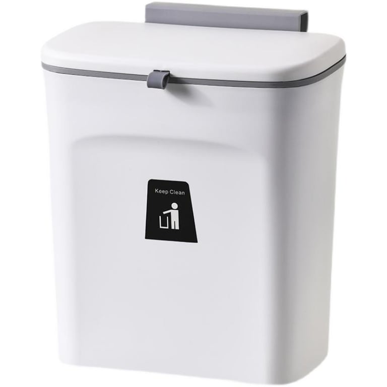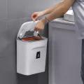Kitchen Wall-Mounted Trash Can with Lid Trash Basket Bathroom Hole-Free Wall-Sticking Slide Cover with Inner Bucket Automatic Closing