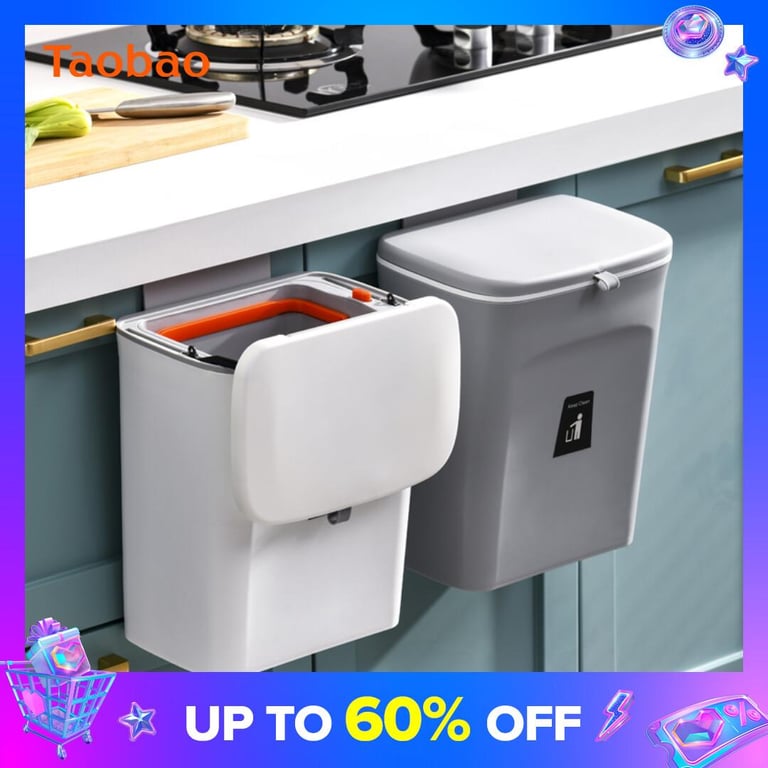 Garbage Classification Household Double-Layer Trash Can Dry Wet Separation Dustbin Japanese-Style Large Kitchen Trash Can with Lid