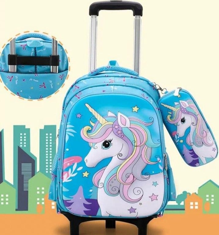 milumilu kids School Rolling backpack Bag set with lunch bag girls School Trolley Bag wheeled Backpack Children school rolling backpack