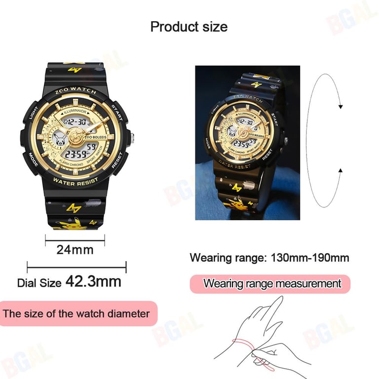 100% Authentic Pokemon Watch Kids Digital Watch with Luminous 50 meter Waterproof Watch for Boys Children Kids Watch Girls Scratch Resistant Pikachu Birthday Gift Christmas gifts 手表8575