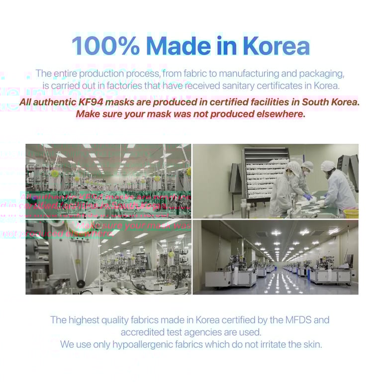 \r\n\r\n- All KF94 masks are produced in certified facilities in South Korea.