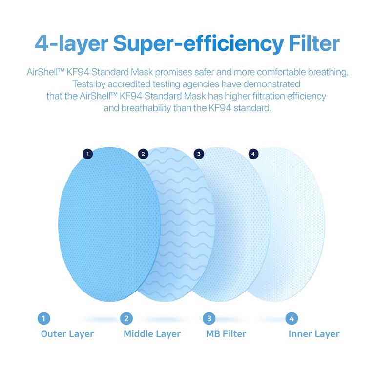 Point 1. AirShell™ KF94 Mask protects your respiratory system better than any others.