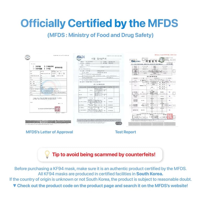 - Before purchasing a KF94 mask, make sure it is an authentic product certified by the MFDS.