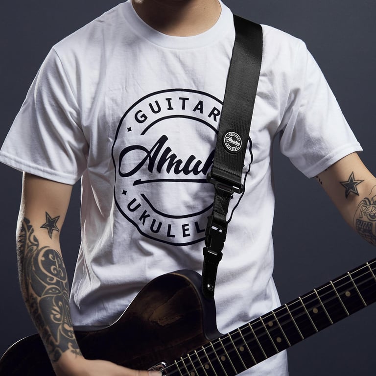 Amumu Seatbelt guitar strap is made Nylon seat belt material. The clip buckle design between the belt and the leather ends made you take off the guitar more quickly and conveniently. The plastic buckle prevents scratching, adjustable length from 40" to 64" (strap button hole to hole) ensures that you can adjust it to the best comfortable length. Fit acoustic guitars, electric guitars, bass guitars, ukuleles.