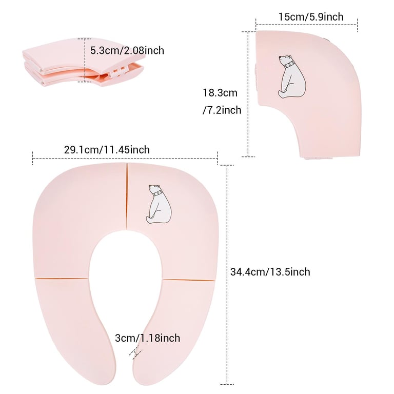 \n\nFreely switch Foldable To Unfoldable Design - Toilet Seat cover Folds up pretty small size of 7.2''L x 5.9''W x 2.8''H to bring to public restrooms easily and perfect for your children's away-from-home bathroom's needs and compact for "on the go" and traveling;