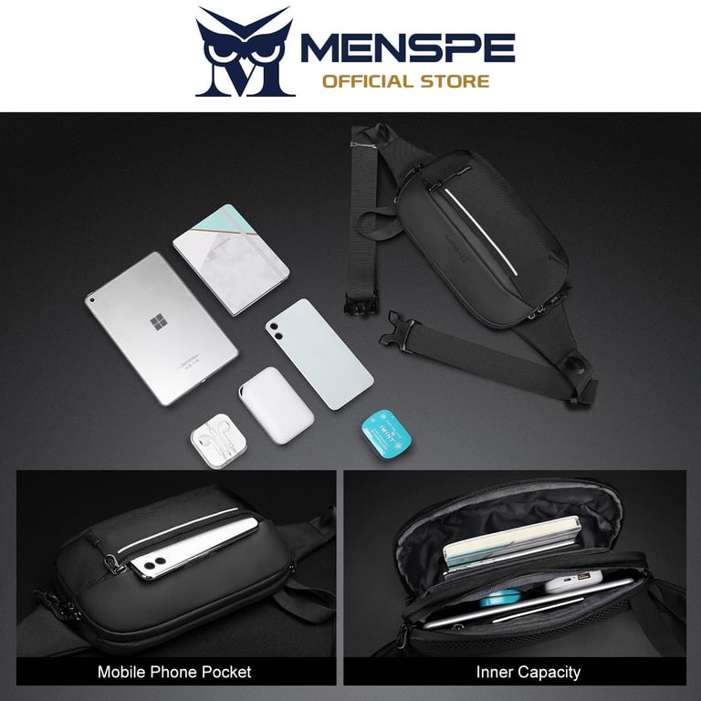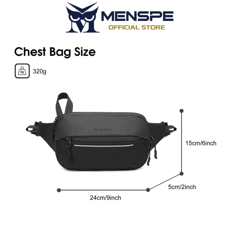 MENSPE Men Chest Bag Casual Fanny Waist Packs Message Bag Waterproof Travel Belt Bag Water Resistant Shoulder Pouch For Money Phone Mini Pad Shoulder Black Bag